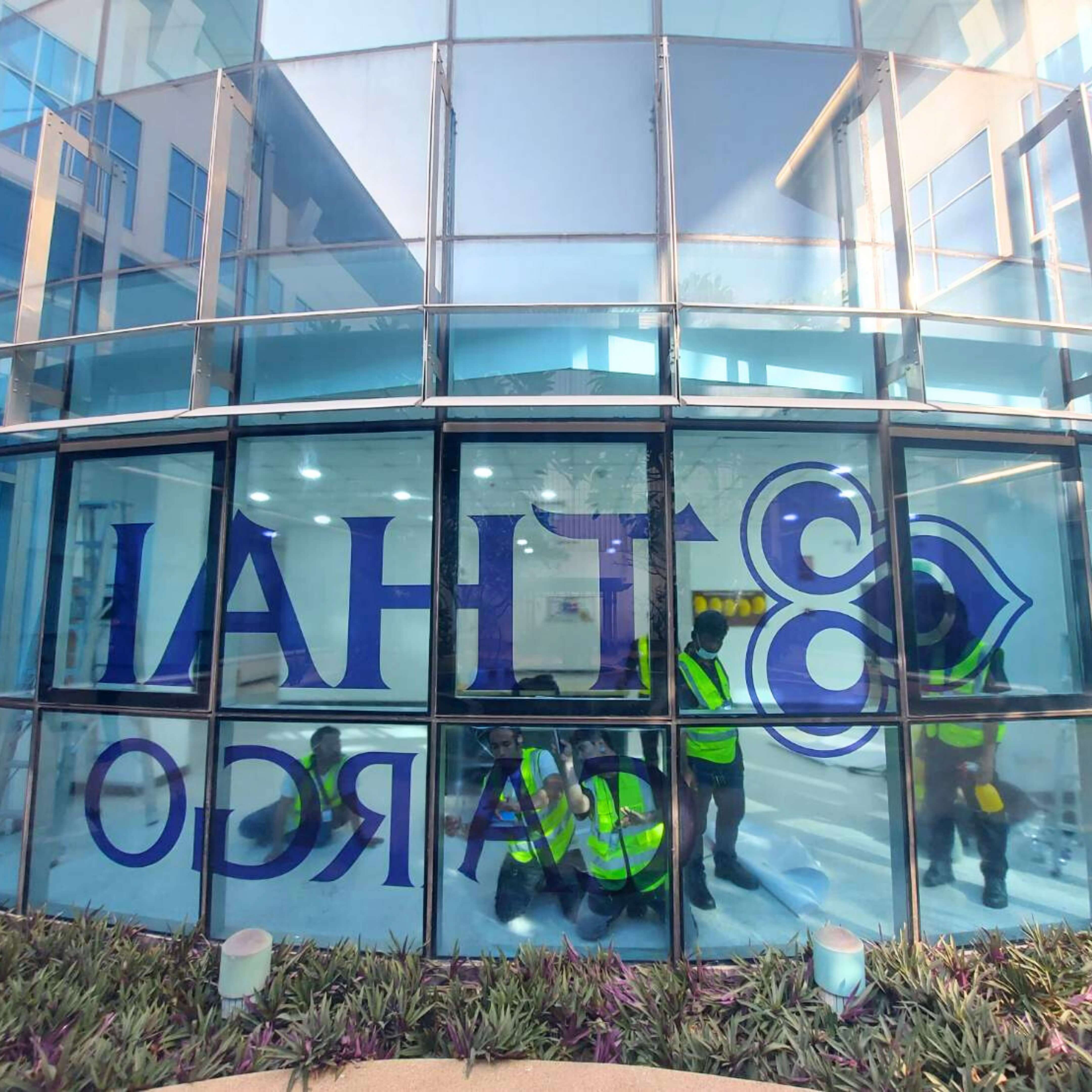 ติดตั้ง สติกเกอร์บนกระจกใส งานพิมพ์ละเอียด คมชัดทุกตัวอักษร