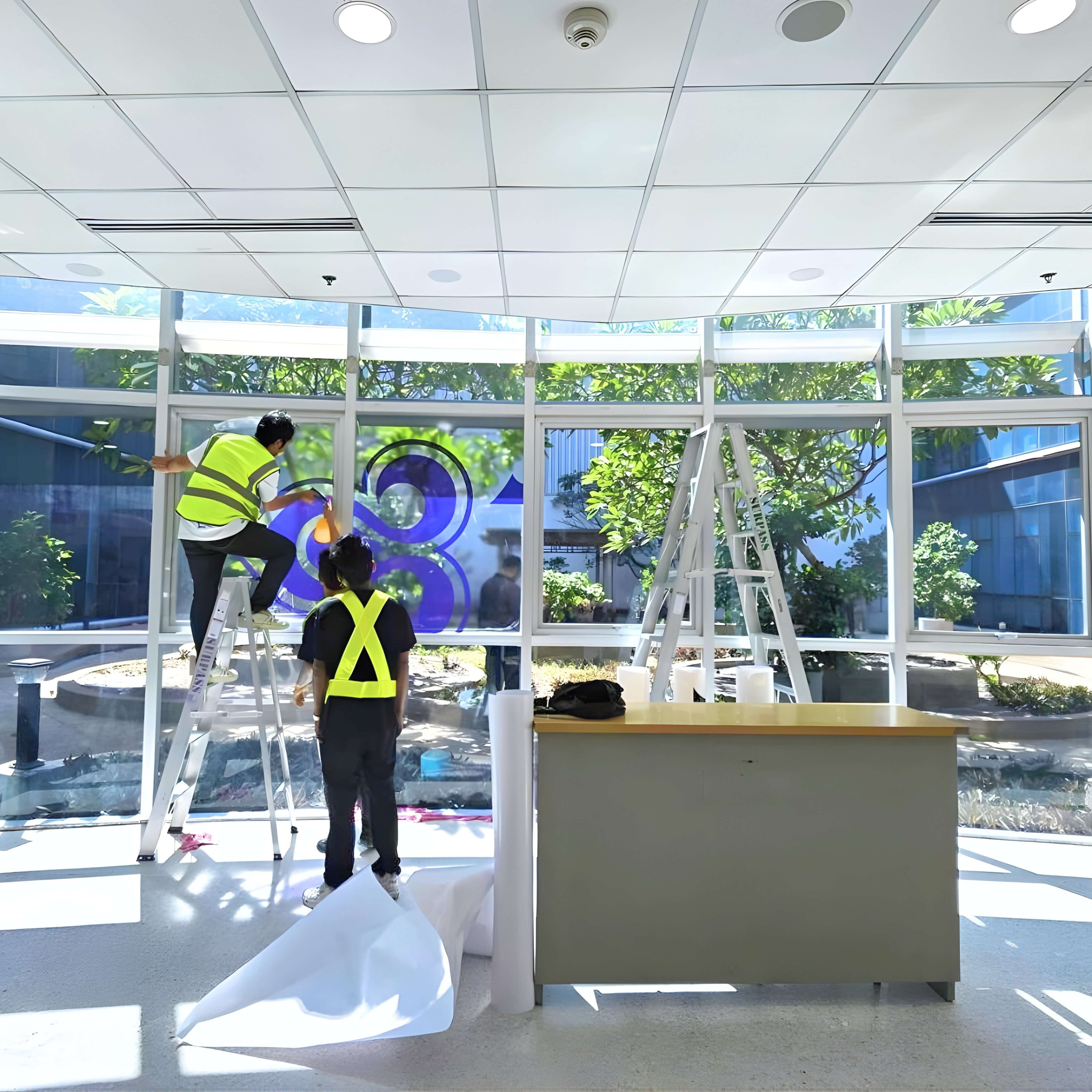 ให้ดูแลงานติดตั้งสติกเกอร์ Inkjet ภายในอาคาร
